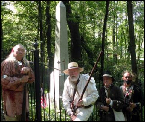Roger Moore, Bill Jones, Doc Shaffer and Jeremy Moore pose at the marker commemorating the destruction and violence in and around Greentown during the War of 1812. |